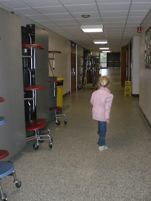 Då är vi i skolan och det är hopplöst att få henne att stå still.